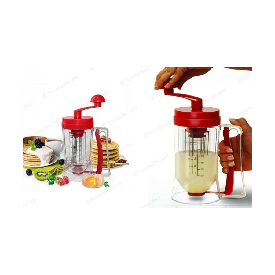 Cutia produsului contine:· Cana gradata;· Capac;· Manivela. Perfect, de asemenea, pentru vafe, clatite, briose, biscuiti, prajituri, etc.