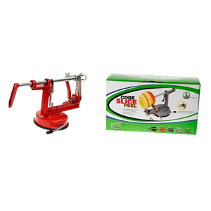 Innoieste-ti bucataria cu inovatorul aparat de curatat si feliat mere. Acum poti pregati deserturi delicioase rapid si nu mai pierzi timp pretios pregatind merele pentru servit sau pentru prajituri.Aparatul pentru decojit ,curat si feliat mere este un accesoriu de neinlocuit pentru oricare gospodina.Acesta decojeste si feliaza mere dintr-o singura manevra.Niciodata nu a fost mai usor sa prepari deserturi gustoase, simplu si rapid.Aparatul este confectionat din metal, este usor manevrabil si se curata cu usurinta sub jetul de apa.Suportul de fixare este antiaderent fixandu-se usor cu ajutorul ventuzei.