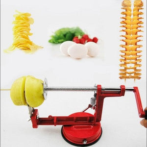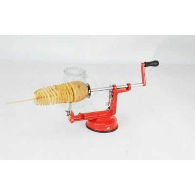Aparatul si-a primit denumirea pentru ca in lumea intreaga cartofii spiralati si prajiti, cu diverse condimente, sunt adorati atat de copii cat si de adulti.Fie ca e o petrecere privata, esti cu familia in reuniunea de weekend sau esti in parc, cartofii spiralati sunt deliciul tuturor.Aparatul de feliat si spiralat este foarte folosit in bucatariile profesionale ale restaurantelor sau teraselor de vara, pentru ca este fiabil si foarte rezistent si usor de folosit!Cum se foloseste aparatul de spiralat cartofi?Decojeste, curata, scobeste, feliaza si spiraleaza si alte legume sau fructe: mere, pere, castravete, morcovi ,practic orice leguma te gandesti ca ti-ar placea sa o mananci feliata si spiralata.Dispozitivul este confectionat din metal rezistent, deci va rezista chiar daca unele legume sunt mai rigide. Tocmai de aceea este foarte folosit in restaurante!Iti doresti sa dai o petrecere deosebita si vrei sa impresionezi? Chipsuri spiralate de cartofi si legume, puse pe gratar cu siguranta vor da gata si cel mai pretentios invitat!Cu acest aparat iti poti pune imaginatia la lucru si rezultatele vor fi uimitoare!Obtii un Veggie Frigarui delicios daca combini legumele intre ele, va fi delicios si pofticios chiar si pentru copii!Iti doresti mancare sanatoasa dar si atractiva? Incearca legumele spiralate puse pe gratar!Instructiuni de folosire:Il asezi pe masa sau pe blatul din bucatarie, el se va fixa de suprafata plana prin ventuza atasata, asezi leguma in locul corespunzator, rasucesti de maner si spirala este gata!Vei deveni un adevarat maestru bucatar de legume!Poti realiza diverse ornamente si combinatii, si asta in doar cateva minute, fara prea multa bataie de cap!Copiii vor indragi legumele spiralate la gratar pentru ca sunt crocante si usor de rontait!