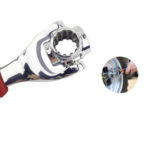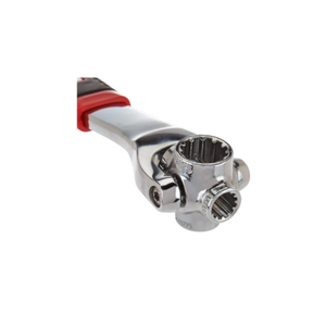 Cheie universala 48 in 1.Dispune de o varietate de capete care pot fi utilizate in majoritatea situatiilor.Se poate schimba cu usurinta capatul pentru dimensiunea de care aveti nevoie printr-o simpla rotire.Cheia poate fi folosita si din pozitia inclinat.Este asadar, foarte utila si inlocuieste cu succes trusele de chei atat de voluminoase si greu de transportat.O unealta cu adevarat revolutionara.