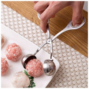 Datorită acestui clește din oțel inoxidabil, biluțele o să fie la fel! Doar puneți carnea tocată, apăsați cleștele, îndepărtați excesul de carne din jur, deschideți cleștele și aveți o biluța perfect rotundă! Clestele poate fi folosit si pentru alte alimente, precum inghetata, orez sau fructe.