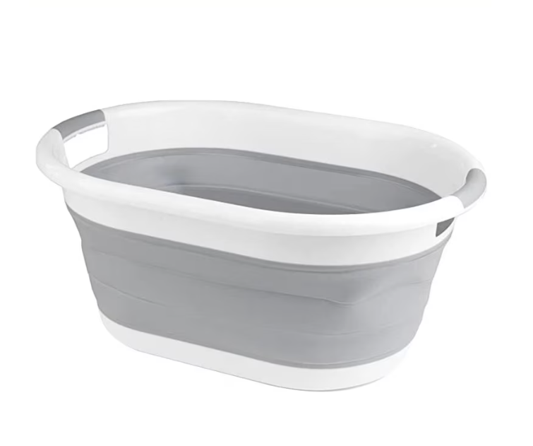 Cos rufe, 2 manere, pliabil, silicon, gri si alb, 25 L, 53x38x23cm/6cm