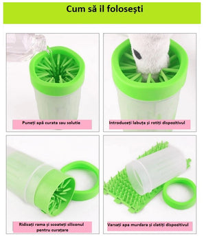 Recipient curatare labute animale Soft Gentle este recomandat pentru curatarea labutelor animalului dumneavoastra de companie fara a mai fi nevoie de spalarea in cada sau in baie.Acest dispozitiv este special creat pentru a indeparta murdaria de pe labutele animalelor fiind ideal pentru caini de talie mica, medie si mare sau pisici, Mod de folosire:Adaugati apa in recipient, puneti capacul si introduceti labutele animalului dumneavoastra pe rand.Dupa utilizare se poate curata sub jet de apa prin simpla clatire a padului siliconic.