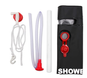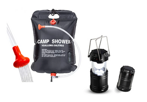 Dus solar pentru camping, PVC, reglabil, capacitate 20 litri + Lanterna tip felinar solar cu functie incarcare telefon CADOU