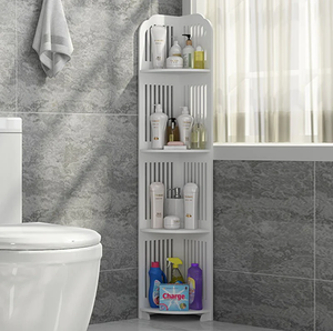 Etajera tip coltar pentru podea are un finisaj alb si va fi o solutie excelenta de depozitare pentru toate accesoriile dumneavoastra de baie.