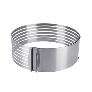 Sa feliati tortul perfect pana la 8 straturi devine o sarcina usoara, datorita acestei forme din otel inoxidabil reglabila: taierea va fi rapida si precisa! Se poate spala in masina de spalat vase si este potrivita pentru prajituri cu diametre intre 24 si 30 cm.