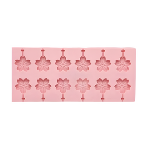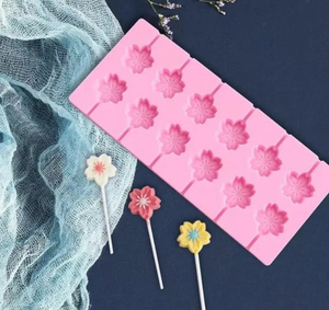 Forma de silicon pentru acadele, lollipop, 12 alveole, Flori, Roz