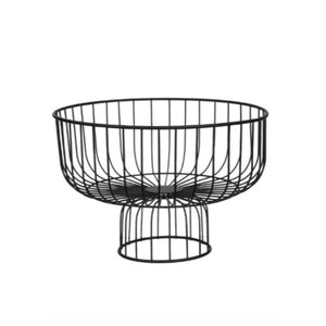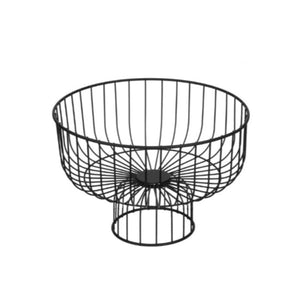 Fructiera metalica neagra rotunda cu baza picior. Decorativa si practica pentru fructe in bucatarie sau in gradina.