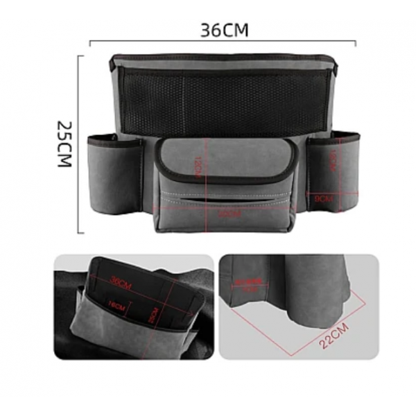 - Geanta de depozitare pentru scaunul auto are un design cu buzunare multiple.