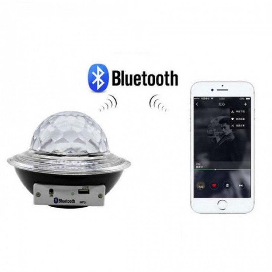 Glob disco cu LED RGB jocuri de lumini si MP3 LED UFO Bluetooth Crystal Magic BallGlob disco cu LED RGB jocuri de lumini si MP3 LED UFO Bluetooth Crystal Magic Balll poate fi folosit atat ca MP3 Player cu Jocuri de Lumini, dar si ca Glob Disco cu LED-uri multicolore, extrem de puternice cu consum redus de energie si durata mare de viata!Datorita tehnologiei LED fasciculele globului creeaza un efect impresionant in orice club, disco, evenimente sau chiar acasa. Acest proiector lumini disco LED UFO Bluetooth Crystal Magic Ball dispune de doua difuzoare incorporate si MP3 player cu Bluetooth, cititor de stick USB si creeaza efecte spectaculoase cu Jocuri de Lumini Colorate, in ritmul melodiilor MP3 pe care le reda.