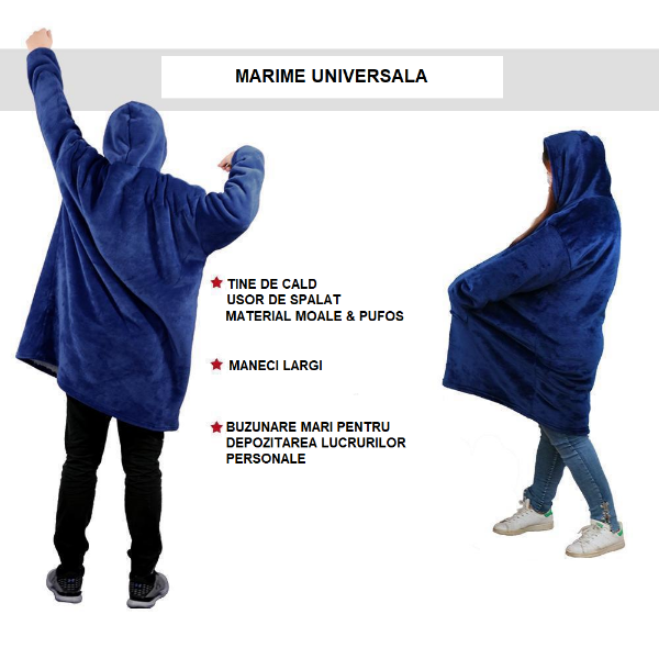 Hanorac patura cu gluga si maneci Huggle Hoodie este cel mai confortabil produs de sezon, care combina caldura unei paturi pufoase cu comfortul hanoracului tau favorit.