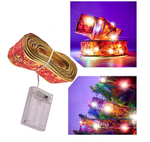 Instalatie panglica luminoasa pentru bradul de Craciun, lumina calda - auriu, argintiu, rosu - 5M