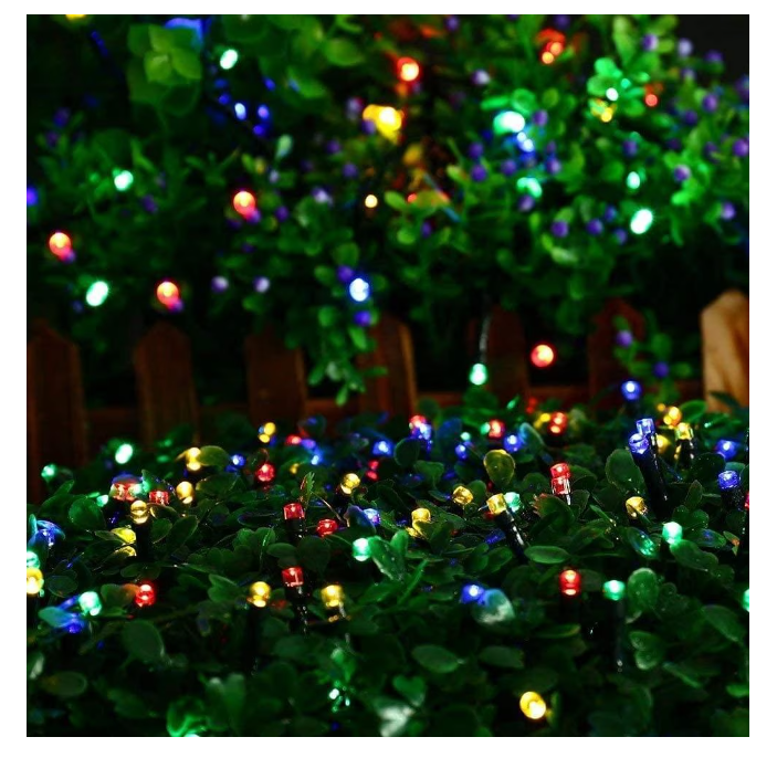 Instalatie solara 10 m cu 100 led, pentru exterior, multicolor, albastru, alb rece, alb cald