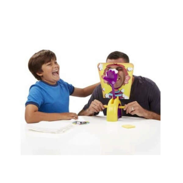 Pie Face, un joc mai mult decat distractiv, care te tine mereu in suspans! In final, cineva va fi primi frisca direct in fata! Pune o crema delicioasa sau frisca pe palma din plastic al jocului si incepe sa rotesti manerul cu numarul pe care l-ai nimerit la invartirea ruletei. In orice moment poti fi tu cel care primeste frisca in fata!