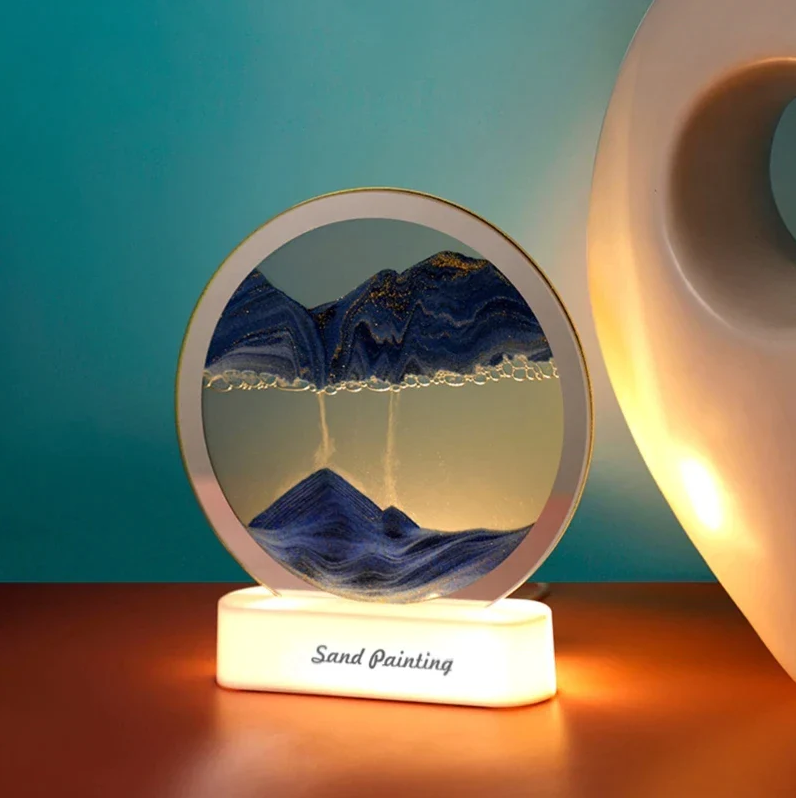 Obiect decorativ pentru birou - Lampa va crea mereu o imagine relaxanta cu nisip dinamic, astfel de fiecare data cand intoarceti imaginea din nisip dinamic, veti obtine o imagine diferita. Privind la nisipul care cade si la schimbarea scenelor peisagistice, va veti simti deosebit de calm si relaxat!
