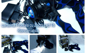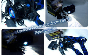 Lanterna frontala cu acumulator, LED si zoom Cree 5W