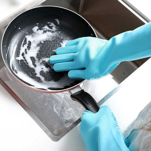 Manusi de silicon multifunctionale inseamna o metoda rapida si eficienta pentru a economisi timp si efort in bucatarie si nu numai!Aveti zilnic multe farfurii de spalat, dar nu vreti sa va distrugeti mainile si totodata sa economisiti timp? Pe manusi se aplica detergent cu care puteti spala si clati vasele rapid si optim. Spalare mai confortabila si mai eficienta. Manusile sunt facute dintr-un silicon eco-friendly si rezista la temperaturi ridicate. Astfel, acestea se pot curata prin fierbere.Manusile de silicon multifunctionale pot fi folosite pentru indepartarea completa a murdariei, fara sa pastreze bacterii si microbi dupa folosire. Ele pot fi spalate si uscate complet, asigurand un mediu curat si igienic! Manusile de silicon multifunctionale pot fi folosite pentru spalarea vaselor, a fructelor si legumelor, curatarea gresiei, a mochetei, cat si pentru pieptanarea animalelor de companie, luand astfel tot parul cazut si scutindu-va de curatenie in plus!Manusile de silicon multifunctionale pot fi folosite chiar si pentru spalarea masinii, cat si pentru curatarea instalatiilor sanitare, deoarece textura moale de silicon indeparteaza murdaria complet fara a lasa zgarieturi sau pete!Specificatii:Nu absoarbe mirosurile si nu se pateaza.Rezistenta la temperaturi de max. 250 °C.Lavabile in masinile de spalat vase.Lungime: 33 cm.Pachetul include 1 x Pereche manusi multifunctionale din silicon.Culori disponibile: in functie de stoc