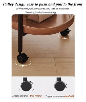 Masa rotunda pentru servire cu doua rafturi ai roti, masa laterala mobila cu roti ai masa rotunda de cafea.
