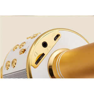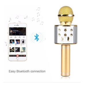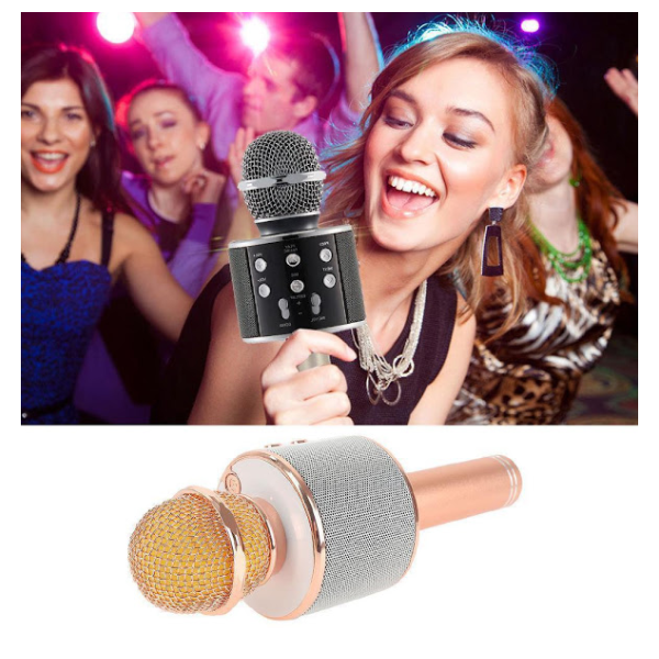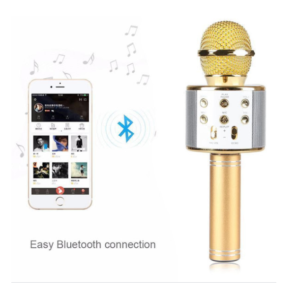 Noul microfon și difuzor WS 858 wireless portabil 2 în 1, este capabil de conectivitate fără nici o conexiune suplimentară datorita tehnologiei bluetooth 4.1 ce poate fie asociat cu dispozitive compatibile Bluetooth. Calitate excelentă a sunetului cu efecte de reverberație ecou este potrivit pentru smartphone-uri iOS și Android, iPad, tablete, orice dispozitiv compatibil Bluetooth.Este compatibil cu majoritatea programelor audio de pe telefon sau de pe computer. Puteți conecta la telefon cu Bluetooth sau cu mufă audio de 3,5 mm.Avantaje:1. Microfon Bluetooth Wireless cu difuzor inclus ce functioneaza simultan2. Sistem de reducere a zgomotului cu 3 straturi pentru redarea exacta a sunetului.3. Suporta Functia TF-Card, plug and play.4. Panou pentru reglarea sunetului multi-functional Parametrii:Material: ABS + aluminiuCuloare: AuriuMarime Produs: Inaltime Microfon 250mm, Difuzor 70*70*65mm (aprox.)Greutate: 460g (aprox.)Output power: 10mw headphone output 5w speaker outputIncarcare: DC5VFrequency range: 100mhz-10000mhzNivel Maxim Presiune Acustica: >115db 1khz THD<1%Reverb mode: echo is active reverbPower supply: built-in 18650 batteryCapacitate baterie: 1800MahVersiune Bluetooth: Bluetooth 4.1, transmisie stabila, consum mic Pachetul Include:1x Microfon1x Cablu IncarcareCulori: gold, negru, rose gold (in functie de stoc)