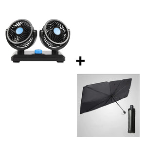 Pachet auto: Ventilator auto dublu, 10W + Parasolar tip umbrela