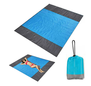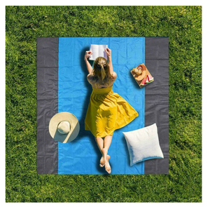 Patura plaja/picnic/camping, Poliester, 210x200 cm, Gri/Albastru