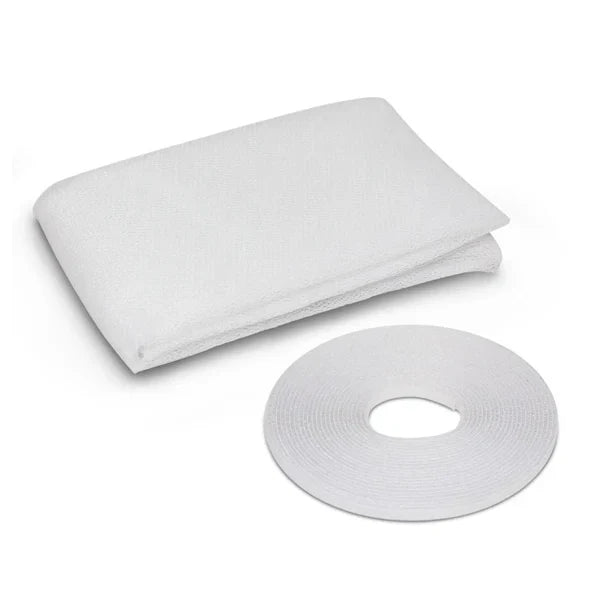 Pachetul conține o plasă de fereastră cu dimensiuni de 150 x 180 cm și o bandă cu scai cu dimensiuni de 6,6 m.