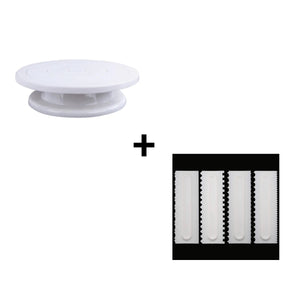 Platou rotativ pentru decorare cu baza antiaderenta+ Set 4 raclete decorare tort, 8 modele diferite