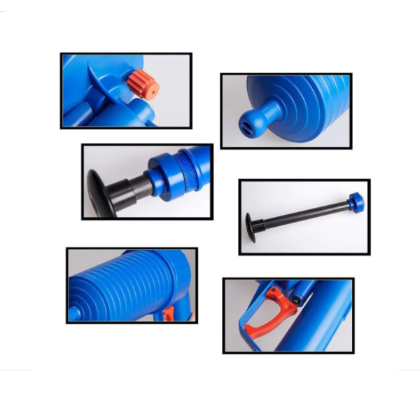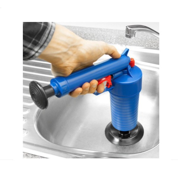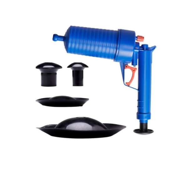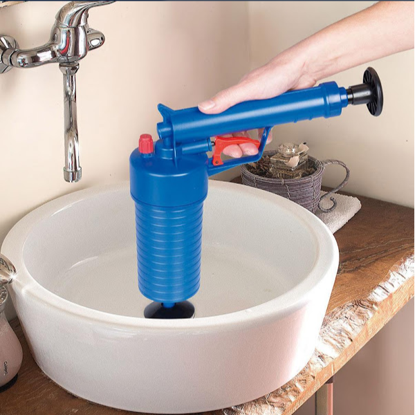 Pistolul pentru desfundat scurgerile functioneaza pe baza sistemului de aer comprimat incorporat.Nu este necesara utilizarea de substante chimice sau corozive deoarece aparatul se foloseste de legile fizicii pentru a indeparta obstacolele, creand o unda rapida si puternica.Prezinta 4 capete ce faciliteaza utilizarea dispozitivului pe mai multe tipuri de scurgeri: toaleta, dus, scurgere de podea, conducte blocate, bideu etc.