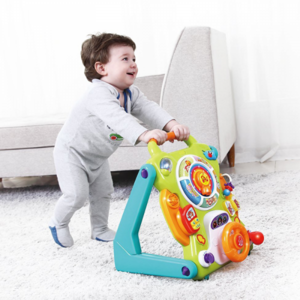 Antemergator 3 in 1 ce se transforma si in masuta, un antemergator ce dezvolta coordonarea motorie dar si mersul in picioare. Cat timp este impins antemergatorul are un senzor ce se activeaza si incepe sa scoata sunete sau sa redea melodii.