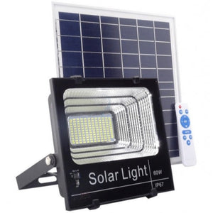 PROIECTOR 80W, 42 LED SMD, PANOU SOLAR SI TELECOMANDA FUNCTII MULTIPLEProiectorul cu 42 LED SMD cu putere de 80W beneficiaza de un panou solar cu ajutorul caruia se incarca, fiind o alegere ideala pentru a fi folosit in locurile fara surse de energie electrica: casa de vacanta, gradina, curte, magazin, cabana, rulote, camping, stana etc. sau pentru a economisi banii.Proiectorul cu 42 LED SMD de 80W este creat special pentru utilizarea in spatii exterioare si este rezistent la ploaie datorita gradului de protectie IP67.Proiectorul cu incarcare solara cu putere de 80W are 42 LED-uri SMD si o telecomanda cu functii multiple pentru setarea timpului de functionare si pentru a controla intensitatea luminii.