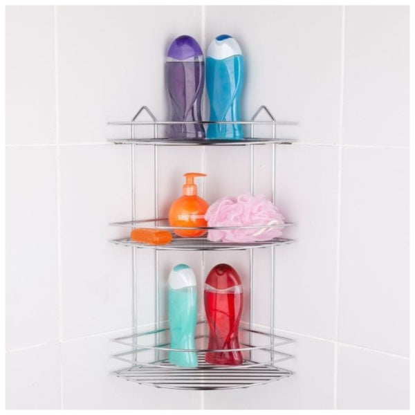 Raft baie metalic 3 locuri 23x23x47 cm. Este potrivit pentru perete sau orice alt punct.