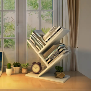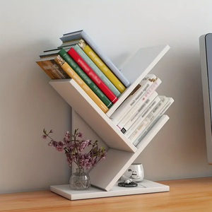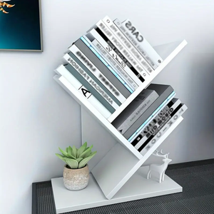 Raft de carti/reviste, forma copac, 3 niveluri, Alb, 40 x 31 x 17 cm