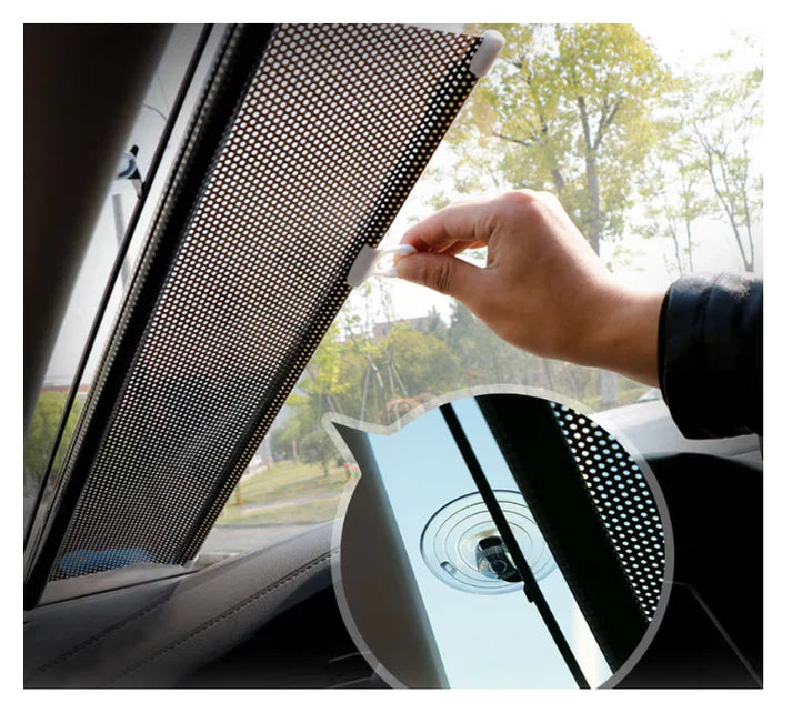 - Parasolarul auto cu ventuze retractabil iti protejeaza masina de razele solare nocive, mentinandu-ti interiorul racoros si confortabil.
