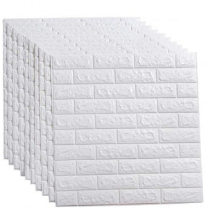 Set 10 x Placa de tapet adeziv caramizi albe 3D, 77x70 cm