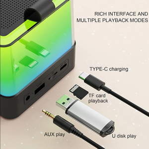 【Moduri de Iluminare Ambientala Atractiva】: Creati o atmosfera captivanta cu cinci moduri de iluminare ambientala din care sa alegeti. Indiferent daca preferati o atmosfera cool si vibranta sau o atmosfera mai relaxata, optiunile de iluminare adauga un element vizual pentru a va îmbunatati experienta karaoke.