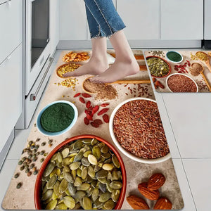 Dimensiunile diferite ale covoarelor din set sunt concepute pentru a se potrivi perfect în fața chiuvetei, aragazului sau a insulei de bucătărie, oferind un confort sporit în timpul activităților zilnice. Aceste covoare sunt ușor de curățat, fie prin aspirare, fie prin spălare manuală, menținându-și aspectul impecabil pe termen lung.