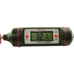 Termometru digital de contact, ideal in industria alimentara (ex: bucatarii) cu ajutorul lui putindu-se masura temperatura din interiorul unui produs solid sau lichid dar si pentru aere conditionate, sisteme de incalzire si ventilatie, service auto, laboratoare si depozite farmaceutice etc. Specificatii :- gama de temperaturi: -50 - +300 grade Celsius (-58 - +572 grade Fahrenheit)