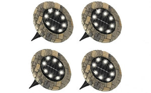 Set 4 lampi solare cu fixare in pamant, aspect piatra, 8 LED-uri+senzor lumina