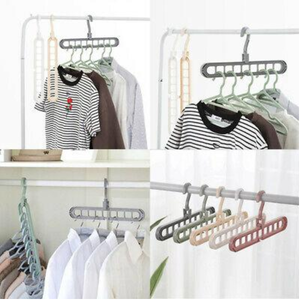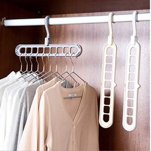 Organizatorul pentru umerase este ideal pentru a economisi spatiu in sifonier.Hainele care ocupau un rand intreg in dulap pot fi puse pe o singura bara prevazuta cu carlig, unele sub altele.Umerasele pot fi agatate in cele noua spatii ale fiecarui organizator.Astfel umerasele vor fi dispuse vertical iar spatiul liber va fi considerabil mai mare.Pachetul contine 5 organizatoare. Fiecare organizator are 9 gauri pentru agatarea umeraselor.Produsul este fabricat din plastic rezistent.