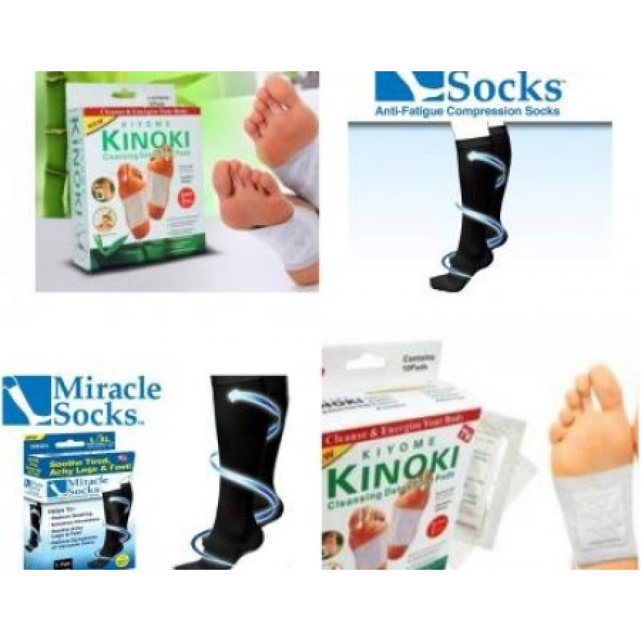 Pachetul contine 50 plasturi Kinoki si o pereche de sosete terapeutice Miracle Socks. 1. Plasturi pentru detoxifierea generala a limfei si a organismului! In medicina traditionala chineza, picioarele au fost considerate ca a doua inima a corpului uman, deoarece din cele aproximativ 360 de puncte de acupunctura, mai mult de 60 se afla pe talpi, impreuna cu zonele reflexogene ale principalelor organe. Cand sangele circula in talpi, cataplasma absoarbe toxinele eliberate de punctele de acupunctura, avand o eficacitate care dureaza pana la 8 ore. In functie de starea fiecarui om, detoxifierea poate sa dureze 2-3 zile, 2-3 saptamani sau mai mult timp in cazurile mai severe.In medie, detoxifierea generala limfatica prin picioare poate dura pana la 30 de zile. O singura noapte de detoxifiere a corpului cu Kinoki plasturi pentru detoxifierea poate aduce schimbari semnificative in culoarea si mirosul cataplasmei (de la culoarea maro, la gri, la negru), aceasta reflectand cantitatea si gradul de toxine ce au fost extrase din corp. Kinoki plasturi pentru detoxifierea generala folosind continuu,apare o reducere vizibila a aspectului si mirosului cataplasmei. Lipind cataplasmele de talpile picioarelor in timpul somnului se obtine un efect mai bun deoarece ii permite corpului sa stea la orizontala, astfel intarindu-se mult circulatia in corp. Aceste cataplasme absorb toxinele daunatoare si rezidurile din corp,rapid si usor. Sunt sigure si nu au efecte secundare. Continuati sa folositi Kinoki pana cand culoarea devine deschisa, indicand ca toxinele au fost eliminate. Cum functioneaza?Desfaceti banda adeziva si aruncati ambalajul. Amplasati cataplasma pe centrul ei si asigurati-va ca scrisul de pe ea este spre suprafata adeziva. Lipiti si apasati ferm cataplasma pe talpa piciorului. Pentru rezultate mai bune, puneti-le cu ceva timp inainte de culcare, le puteti purta si prin casa daca dormiti mai putin de 8 ore. Tineti cataplasma 8-12 ore pentru ca toxinele sa fie complet absorbite din corp, inainte de a inlatura cataplasma. 2.Cadou - Sosete terapeutice Miracle Socks.
