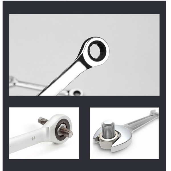 Constructie speciala pentru a impiedica alunecarea cheii de pe piulita. Atunci cand cheile clasice nu pot fi folosite, cheile combinatate cu clichet isi arata valoarea. Mecanism cu 72 de dinti, fabricat din aliaj special, este actionat si sub un unghi de numai 5 grade.