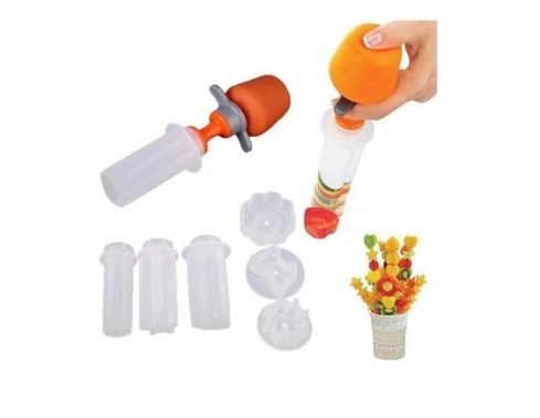 Set Pop Chef de ornare decupeaza fructele si legumele moi in 6 forme diferite: flori, stele, fluturi si 3 forme alungite, cu diverse diametre (stea, inima si forma cilindriuca simpla).Formele pentru decupat sunt fabricate din plastic tare.Puteti realiza si mini sandwichuri din diverse ingrediente: paine, legume moi, cascaval, branza, sunca etc.Setul de decorat are un mod inedit de utilizare: intai decupati alimentul in forma dorita, apasand pe cele doua manere de plastic, apoi apasati pompa manuala din silicon care, odata cu aerul, va impinge afara si decupajul. Se curata simplu, cu detergent si apa.Dimensiuni forme pentru decupat si decorat:Floare: Diametru 5.8 cm, adancime 2 cm;Stea: Diametru 4 cm, adancime 2 cm;Fluture: Latime 4.8 cm, inaltime 3 cm, adancime 2 cm;Stea alungita: Diametru 3 cm, adancime (lungime) 7.5 cm;Cilindru simplu: 2.7 cm, adancime (lungime) 7.5 cm;Cilindru inimioara: 4 x 3.5 cm, adancime (lungime) 7.5 cm.