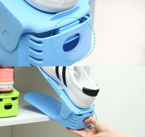 Reduceti spatiul necesar pentru pantofi la jumatate, datorita acestui accesoriu inteligent! Organizatorul de pantofi, printr-un truc simplu va permite sa puneti doua perechi de pantofi in acelasi spatiu ocupat in mod normal de unul si chiar sa impiedice sa se murdareasca.