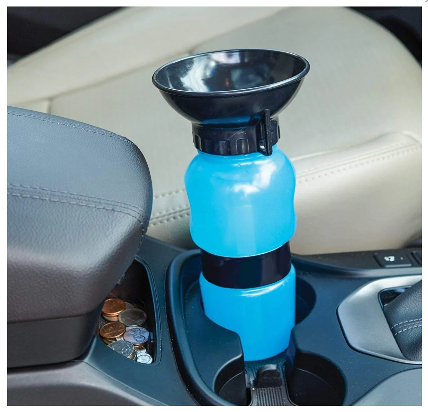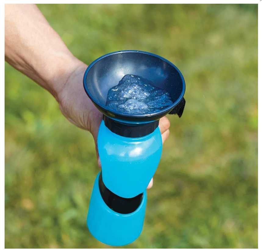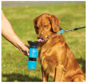Pastrati-va cainele hidratat in timpul plimbarilor cu aceasta sticla Aqua Dog .Cand cainele este insetat, apasati pe sticla iar vasul de deasupra se va umple astfel incat partenerul canin sa se poata hidrata. Vasul se goleste inapoi in sticla cand presiunea este eliberata.Sticla Aqua Dog va permite o usoara si naturala hidratare a companionului canin indiferent de unde va aflati.Usor de luat cu tine.Se potriveste perfect in masina.Dimensiune: 21,5 x 10,7 x 10,7 cm.Capacitate: aproximativ 585ml.