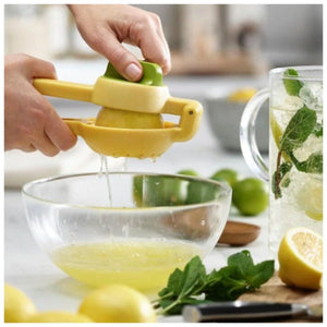 Design-ul unic cu dubla actiune va permite sa stoarceti fructul dintr-o singura miscare, tot ce aveti de facut este sa asezati jumatate de fruct in recipient, atasati partea superioara a storcatorului si rotiti de maner.
