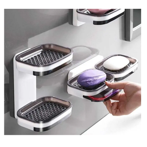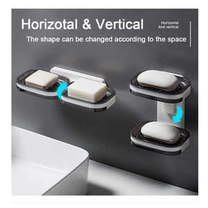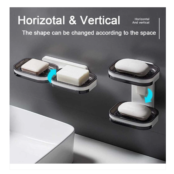 Suport pentru două săpunuri sau alte articole mici pentru baie sau bucătărie. Oferă două poziții – orizontală și verticală, care pot fi rotite cu ușurință. Suportul este, de asemenea, echipat cu un compartiment sub grilă de săpun, care poate fi scos și curățat cu ușurință. Instalare ușoară și rapidă.