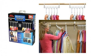 Set de aranjare a umeraselor de haine Setul contine sisteme de agatare a umeraselor. Castigati de pana la trei ori mai mult spatiu prin depozitarea intercalata in sifonier a acestor inovatoare sisteme pentru umerase!Fiecare sistem dispune de locasuri pentru agatarea de umerase. In total, veti avea 50 de locasuri de agatat umerase! Bluzele, esarfele, fustele, pantalonii si camasile dumneavoastra nu au fost nicicand mai eficient aranjate in sifonier! CULORI DISPONIBILE IN FUNCTIE DE STOC!Pachetul contine 50 suporti umerase
