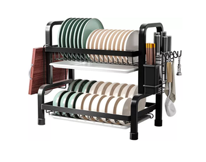 Suportul pentru vase pe doua niveluri este o solutie practica si versatila pentru organizarea eficienta a bucatariei.