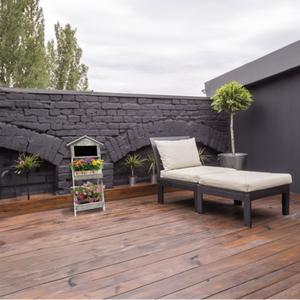 Suport ghivece, lemn alb, doua nivele + tabla neagra, 36x29x80cm