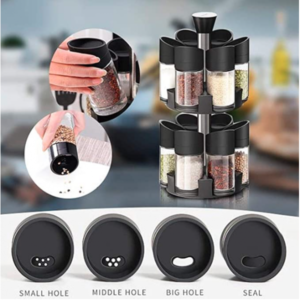 Suport rotativ condimente pe nivele cu 12 recipiente
